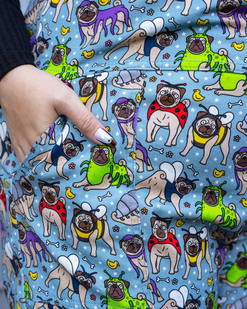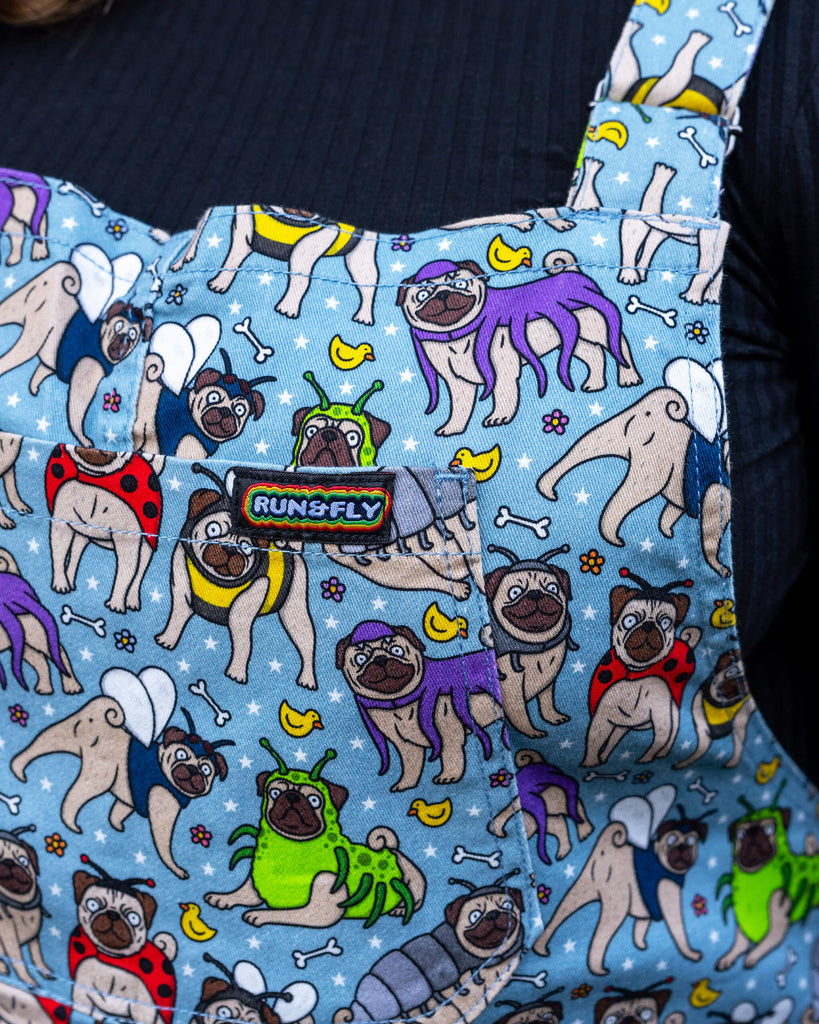 Add some paw-some personality to your wardrobe with the Pug Bugs Dungarees today—because life’s too short for boring clothes!
