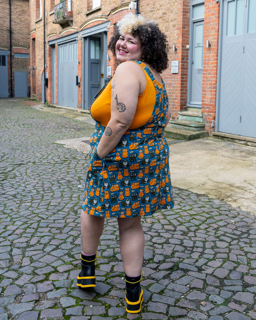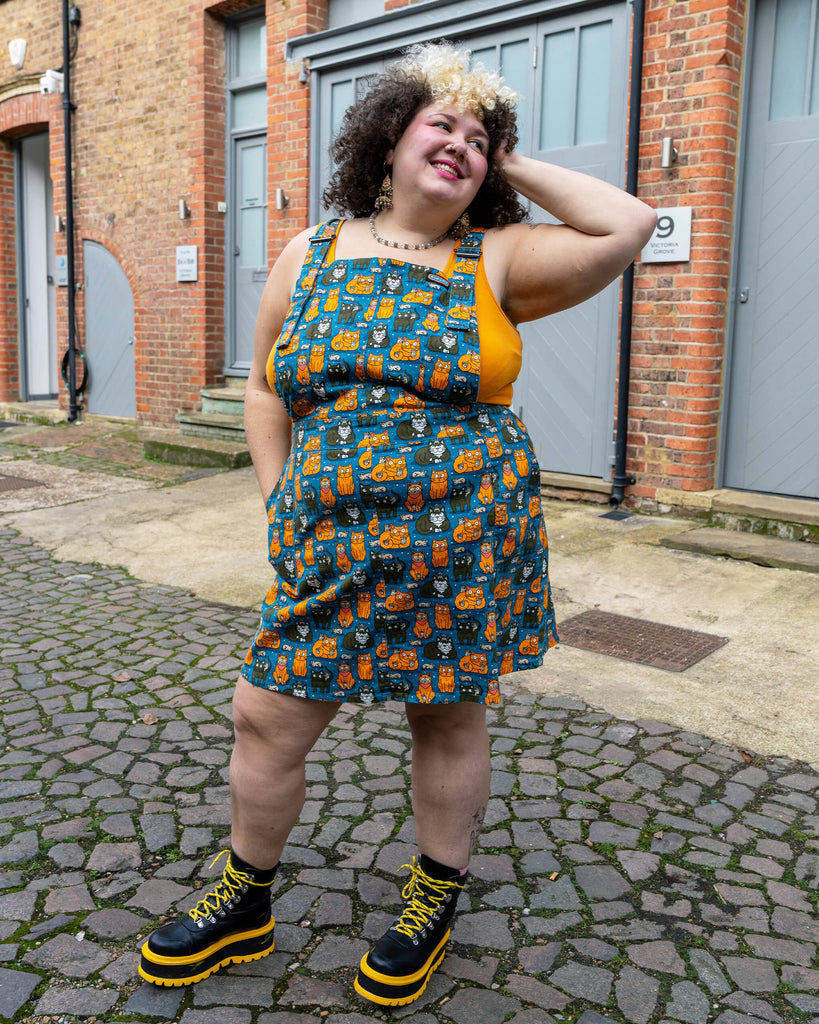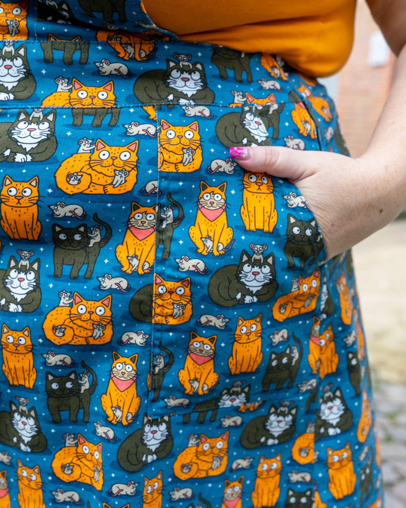Get ready to purrfect your style with our Cats and Mice Stretch Twill Pinafore Dress! Featuring an adorable print of feline friends befriending some cute mice, this dress is made with stretch twill for ultimate comfort. Upgrade your wardrobe with this playful and quirky piece!