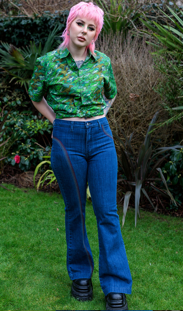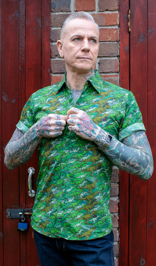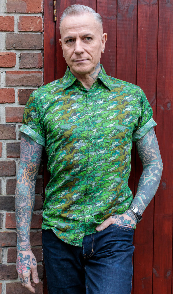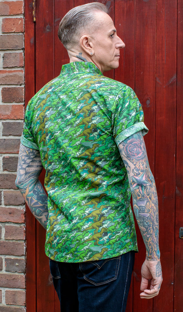 Run & Fly 80's Kitsch Retro camo dino Short Sleeve Shirt